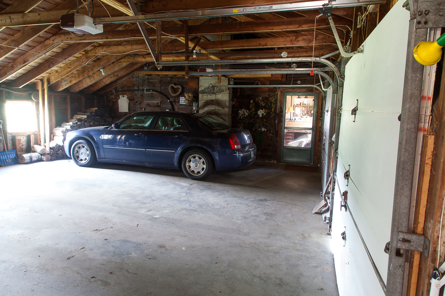 The antique barn, (30 x 34 ft.*) provides 1020 sq.ft. on the ground level with a concrete floor. Storage is greatly expanded with two upper levels. The barn is equipped with an automatic ventilating fan for hot summer days. Suitable for parking up to 5 cars, agricultural equipment, and general storage the barn can be considered useful for many purposes. The barn has a large work bench built in with drawer storage. Windows allow natural daylight illumination. As the barn has housed no animals for 15 years, there is no agricultural smell. The current owners have held many club meetings and workshops in this well-lit space. It could be readily adapted to an antique shop, a wedding business, a work area for craftsmen or converted to stalls for animals. From the house, the barn has indoor access through the garage. Great for cold snowy days.